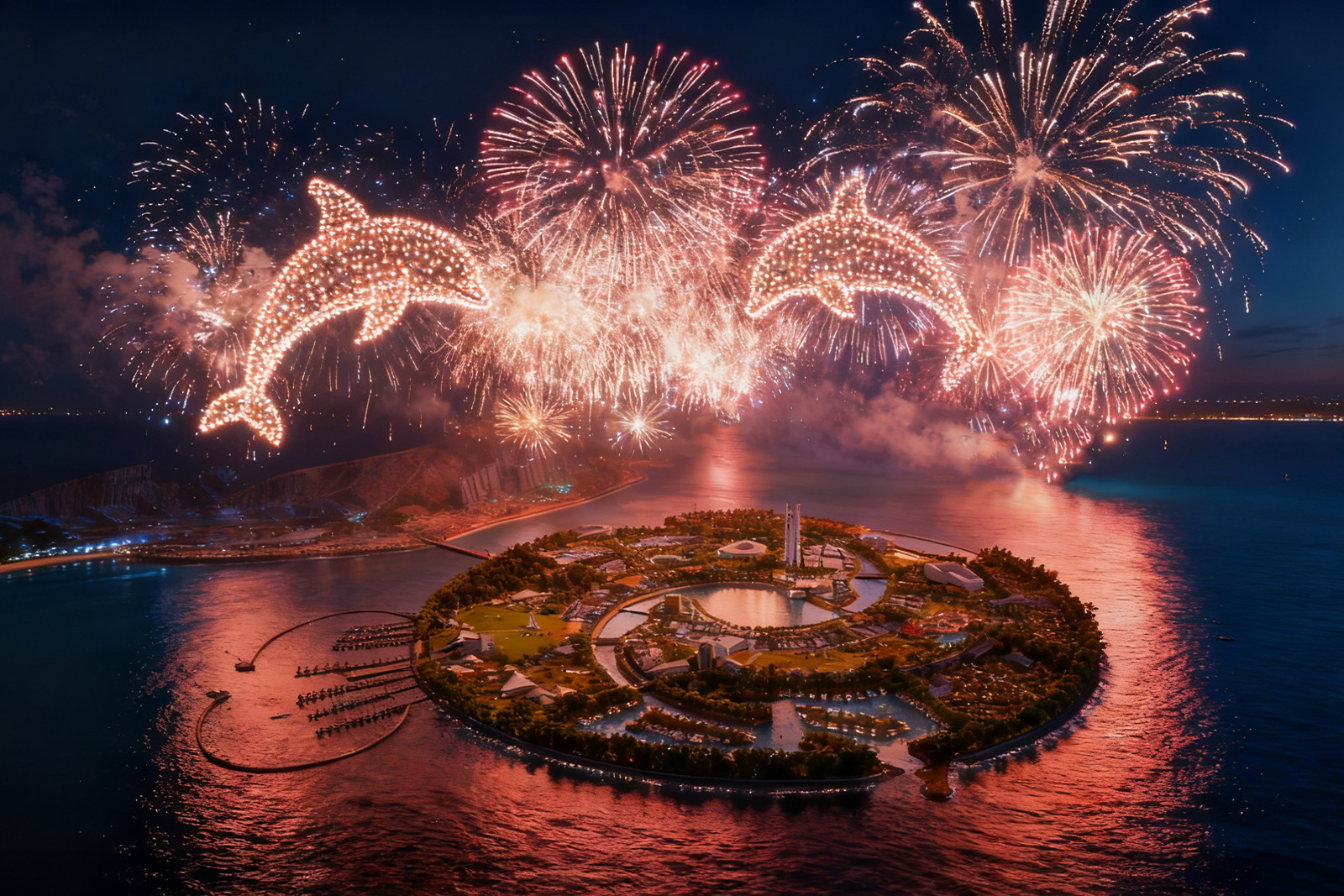 烟花入海,双鱼在此相逢。为迎接即将到来的2026年新年,一场集“焰火+无人机+沉浸式演艺”于一体的“双鱼岛·双鱼奇缘焰火大秀”将于2025年12月31日、2026年1月1日在漳州开发区双鱼岛上空璀璨绽放,以漫天华彩向新的一年浪漫告白。